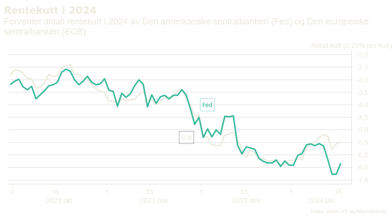 De lange rentene har fortsatt sin jo-jo-ferd også inn i det nye året, og rentene har siden midten av desember steget i de fleste land. Oppgangen har så langt vært på omtrent 20 bp. Det innebærer at 20-25 % av fallet fra høsten 2023 er reversert. Vi ser på dette som en motreaksjon på det kraftige fallet, og forventer ikke videre oppgang fra disse nivåene. Kredittmarkedene, særlig her hjemme, bærer preg av at det er mye likviditet som søker kredittrisiko for tiden. Det innebærer at mange av de nye emisjonene som er gjennomført er gjort på lave kredittmarginer. Den norske kronen fikk en etterlengtet styrkelse etter at Norges Bank, som en av svært få, fortsatte med å heve renten i desember. Den initiale bevegelsen var kraftig, og de siste ukene har kronen stabilisert seg på et nivå som er 5-6 % sterkere enn før rentemøtet.