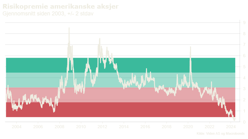 Våre beregninger tilsier at risikopremien i det amerikanske aksjemarkedet er tilnærmet lik null, og vi fortsetter å ha en litt forsiktig tilnærming til denne delen av markedet.